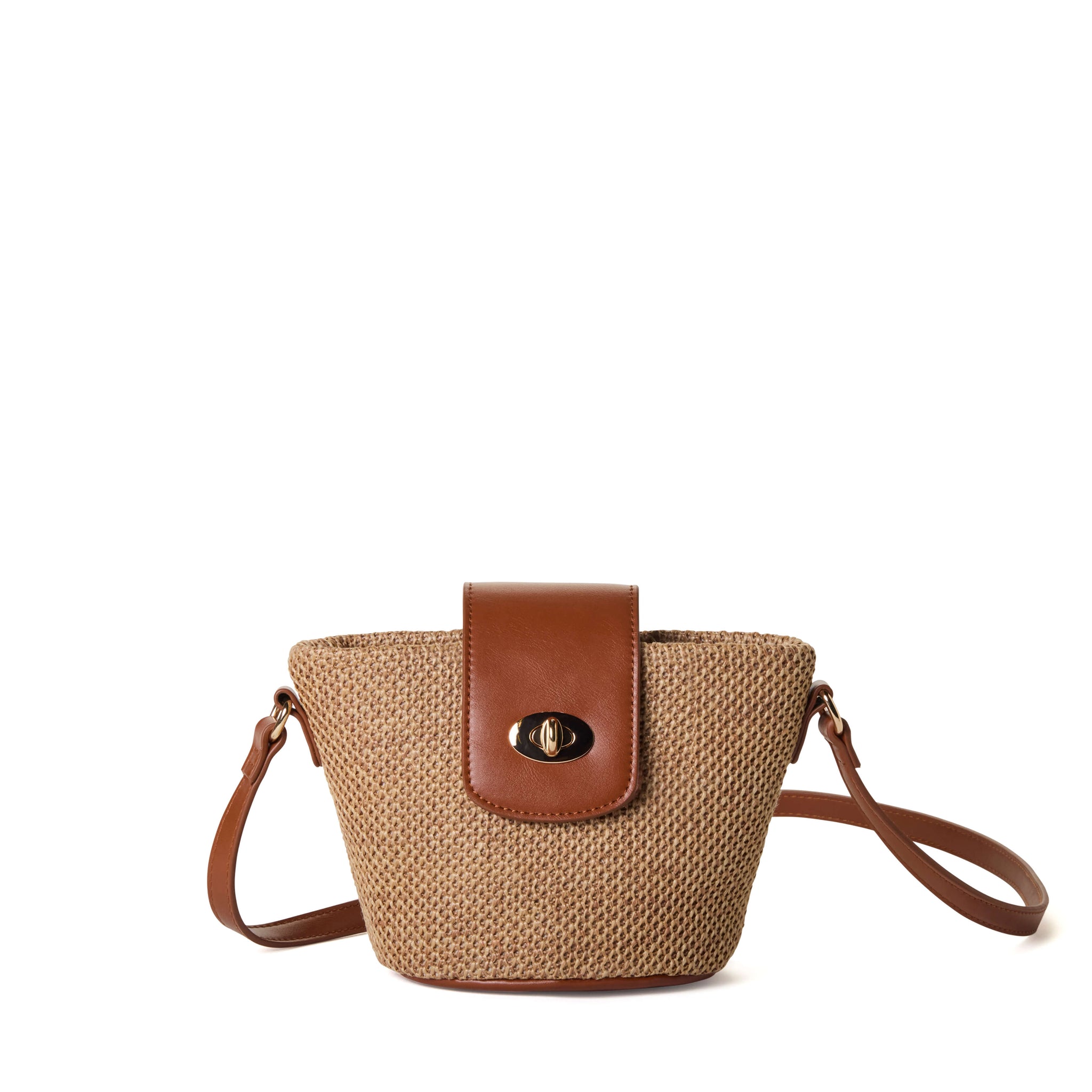 EMMA Two-Tone Woven Crossbody Bag - Tan