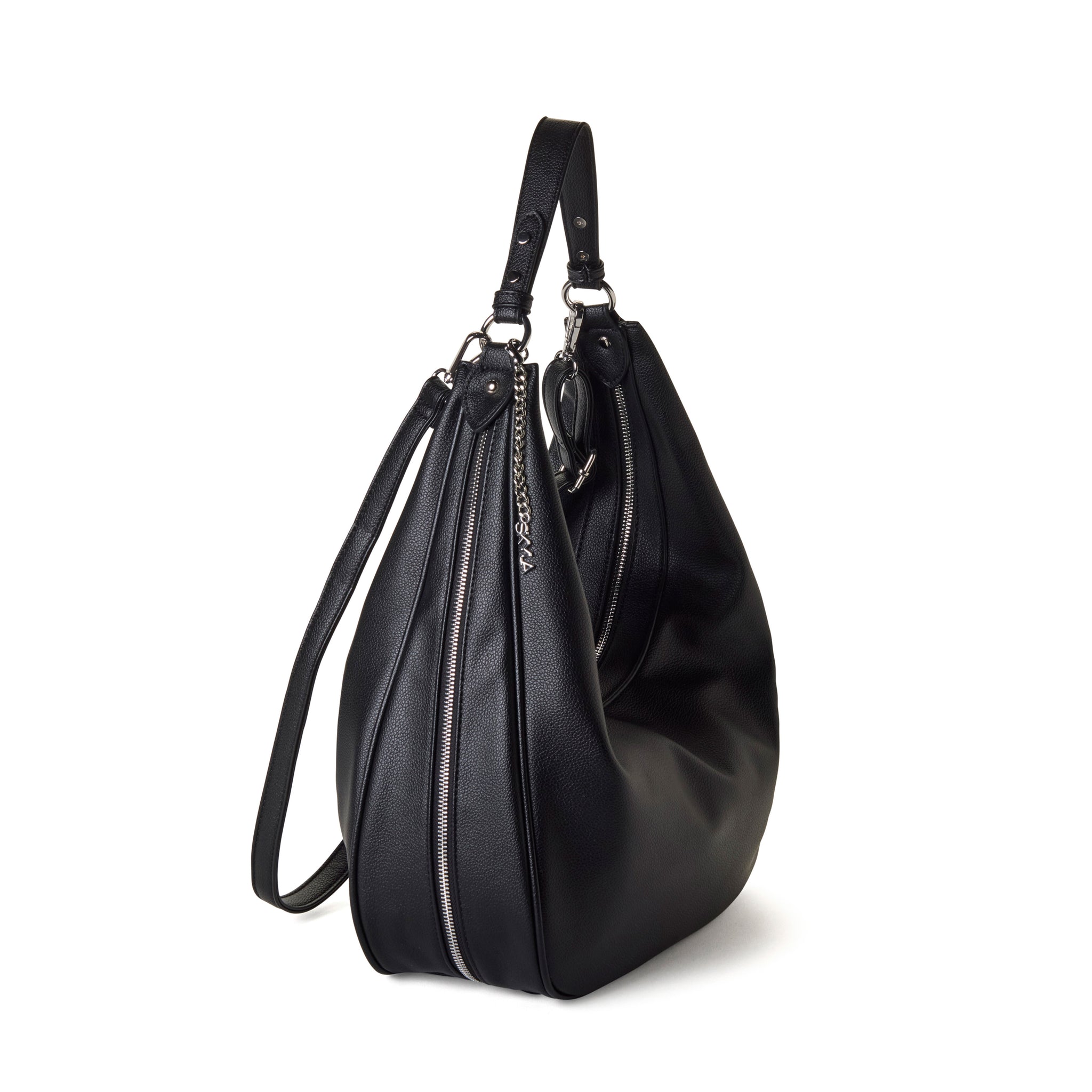 The interior of the REBECCA, made from recycled water bottles, is generously proportioned to accommodate your laptop, a reusable water bottle, and your daily essentials, all while maintaining its sleek, hobo profile. The internal organization includes secure pockets for your phone and keys, ensuring that your life stays as organized as it is stylish. The hardware is finished in a high-shine polish that contrasts beautifully against the matte-black recycled fabric. Whether paired with a sharp blazer or a relaxed summer knit, the REBECCA in Black is more than an accessory; it is a testament to the fact that the most stylish choice you can make is a sustainable one.