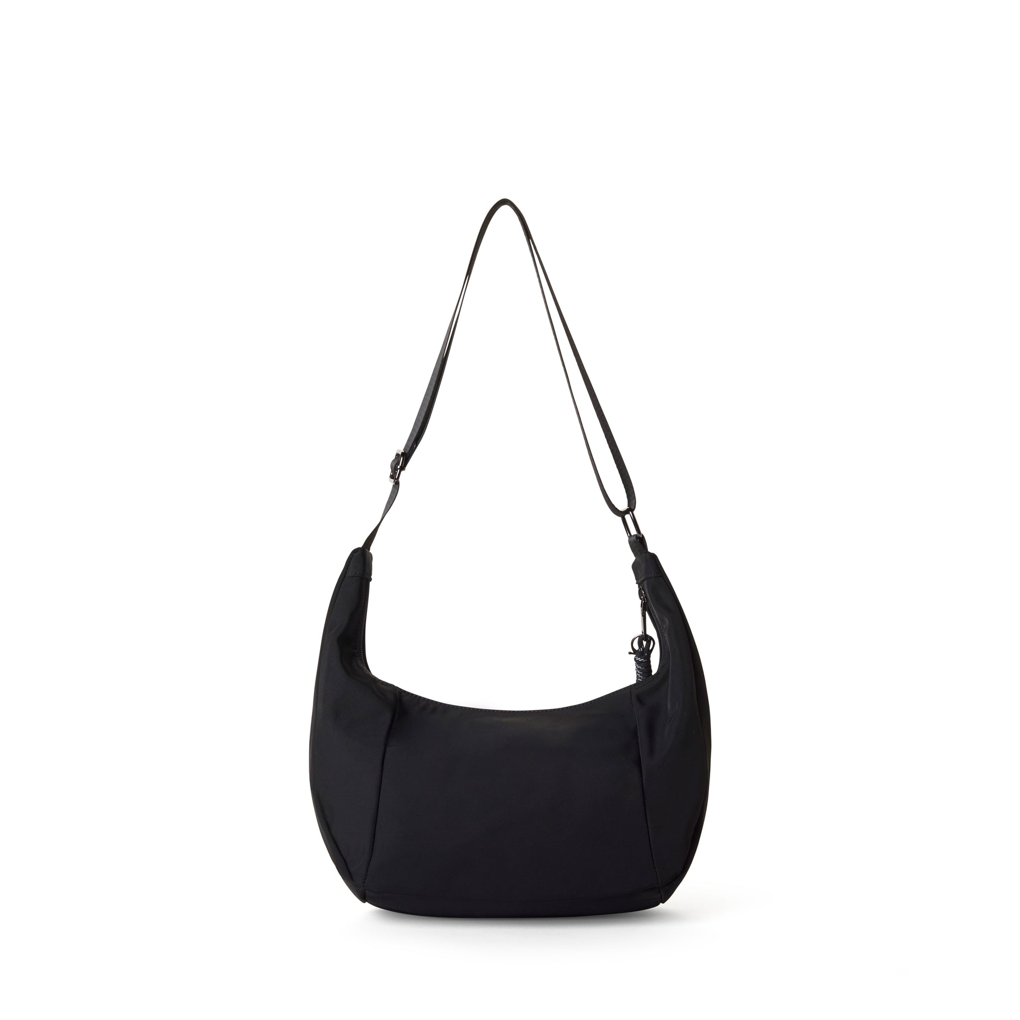 Le REA est conçu pour les modes de vie actifs. Ce sac souple en nylon offre une grande capacité sans l'encombrement d'un cabas structuré, idéal pour celles et ceux qui ont besoin d'emporter plus que le strict minimum. Il est doté d'une fermeture éclair sécurisée sur le dessus pour vos effets personnels et d'une poche zippée supplémentaire à l'avant pour un accès rapide à vos appareils électroniques, votre portefeuille ou vos cartes de transport. La bandoulière ajustable offre la polyvalence nécessaire pour s'adapter à différents styles et morphologies, assurant un confort optimal, que vous portiez le sac sur un t-shirt léger d'été ou une veste de saison. Le REA noir est le caméléon par excellence de votre garde-robe. Il apporte une touche moderne et élégante à une robe fleurie colorée ou complète avec aisance une tenue monochrome noire et épurée. Le nylon recyclé possède une finition noire mate haut de gamme qui capte subtilement la lumière, soulignant sa texture souple unique. À l'intérieur, les doublures sont recyclées et l'organisation est optimisée, fidèle à notre engagement d'une conception responsable dans les moindres détails. En investissant dans le REA, vous ne faites pas qu'acheter un sac ; vous soutenez un mouvement vers une économie de la mode circulaire et responsable. Appréciez sa praticité dès aujourd'hui et profitez d'une tranquillité d'esprit durable en choisissant un avenir respectueux de la planète.
